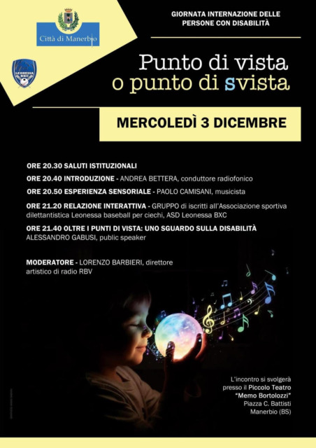 Alle 21.20 una relazione interattiva con i membri della Leonessa BXC e in chiusura “Oltre i punti di vista: uno sguardo sulla disabilità, con Alessandro Gabusi, public speaker.