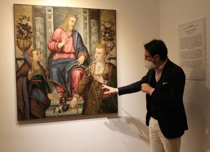 “La mostra ha un carattere scientifico e filologico. Sono presenti delle novità assolute, tra cui tre opere inedite di Galeazzi. Due dipinti, tra cui la Pala della cappella del vescovo (Madonna con il bambino tra le sante Cecilia e Caterina d’Alessandria e committenti della famiglia Luzzago ndr), sono esposti qui dopo 118 anni dall’ultima esposizione. Ho chiesto al mio comitato scientifico di indagare la simbologia delle opere. Ed è stato fatto anche uno studio sulle cornici di Luca Mombello, una delle quali, (quella che adorna il quadro Dio padre e la Vergine Immacolata ndr), è un capolavoro assoluto. Esistono mostre molto ampie che affrontano un tema a 360 gradi, questa invece è una piccola mostra, raffinata. Le opere provengono per la maggior parte da chiese o cappelle private bresciane. Ma una di Luca Mombello proviene da una fattoria in provincia di Crema”.