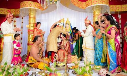 Il padre della sposa ha posto la mano destra della figlia su quella di Sylvester, consegnandogliela simbolicamente, ha legato i mignoli degli sposi con un unico filo, a simboleggiare l’unità. Poi ha versato dell’acqua sulle dita. Sei ragazze hanno benedetto il matrimonio con un canto tradizionale: “Jayamangala Gatha”. Quando la coppia è scesa dalla Poruwa, un membro della famiglia dello sposo ha rotto un cocco fresco in due, per scacciare gli spiriti maligni. Per gratitudine, lo sposo ha presentato alla consorte un panno bianco, che a sua volta ha consegnato alla madre. «La cerimonia di nozze tradizionale dello Sri Lanka è un bellissimo scambio di voti e doni simbolici, -ha affermatoMirella Bellanza , tata de “il Roccolo”- che risale al 300 A.C». «I testimoni nuziali – ha affermato la sposa- sono stati i nostri padri».