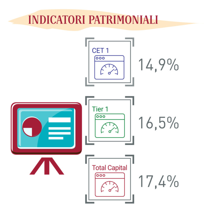 Incremento dei ratios patrimoniali: CET 1 ratio consolidato al 14,9%, Tier 1 ratio al 16,5% e Total Capital ratio al 17,4%.