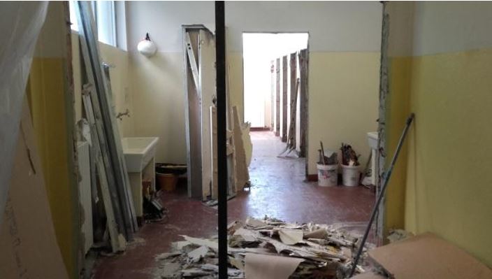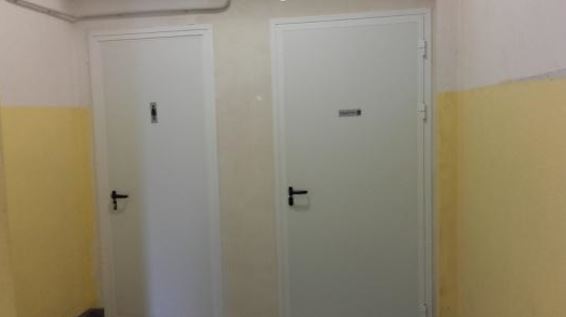 Nel corso dei lavori, oltre a sanificare e migliorare i servizi igienici esistenti, sono stati realizzati i servizi igienici per i diversamente abili abbattendo le barriere architettoniche. Sono state interamente rifatte le cinque batterie di servizi igienici e sono stati inseriti i due bagni per persone diversamente abili. Gli spazi sono stati ridistribuiti, i sanitari esistenti sono stati rimossi, il pavimento e il rivestimento sono stati demoliti. È stato poi rifatto l’impianto idro-termo-sanitario, sono state sostituite le porte interne e sono state posate le attrezzature complete per i servizi delle persone diversamente abili. Infine sono stati installati i lavabi, i wc e le rubinetterie degli altri bagni, sono stati posati i nuovi rivestimenti e il pavimento e sono stati tinteggiati i locali.