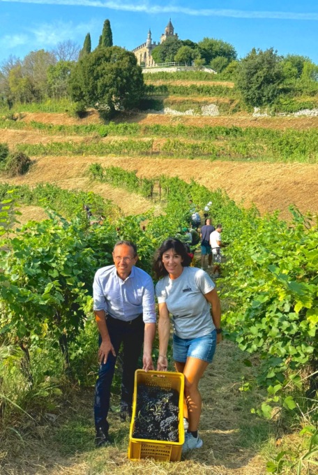 Nella foto in alto (di Confagricoltura): la vendemmia alla Santissima di Gussago, nel vigneto in gestione alla società agricola Castello di Gussago La Santissima della famiglia Gozio