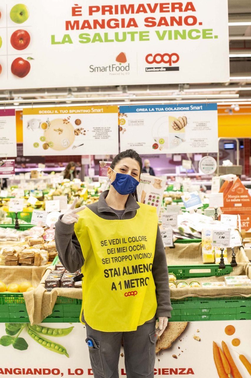 “Da sabato – ha spiegato il responsabile comunicazione di Coop Lombardia Andrea Pertegato – è attiva in tutti i supermercati della rete di vendita Coop Lombardia, un’iniziativa dedicata a ricordare agli avventori dei supermercati di mantenere le distanze. Tutti i dipendenti che operano in area vendita indossano una pettorina che riporta il messaggio relativo alla distanza sociale raccomandata per la criticità sanitaria in corso. Per Coop Lombardia la sicurezza dei propri clienti e dipendenti è da sempre un valore imprescindibile ed anche in questo momento la cooperativa sta adottando tutte le misure di prevenzione utile. Una modalità di comunicazione originale e non convenzionale, che è stata apprezzata dai clienti”.