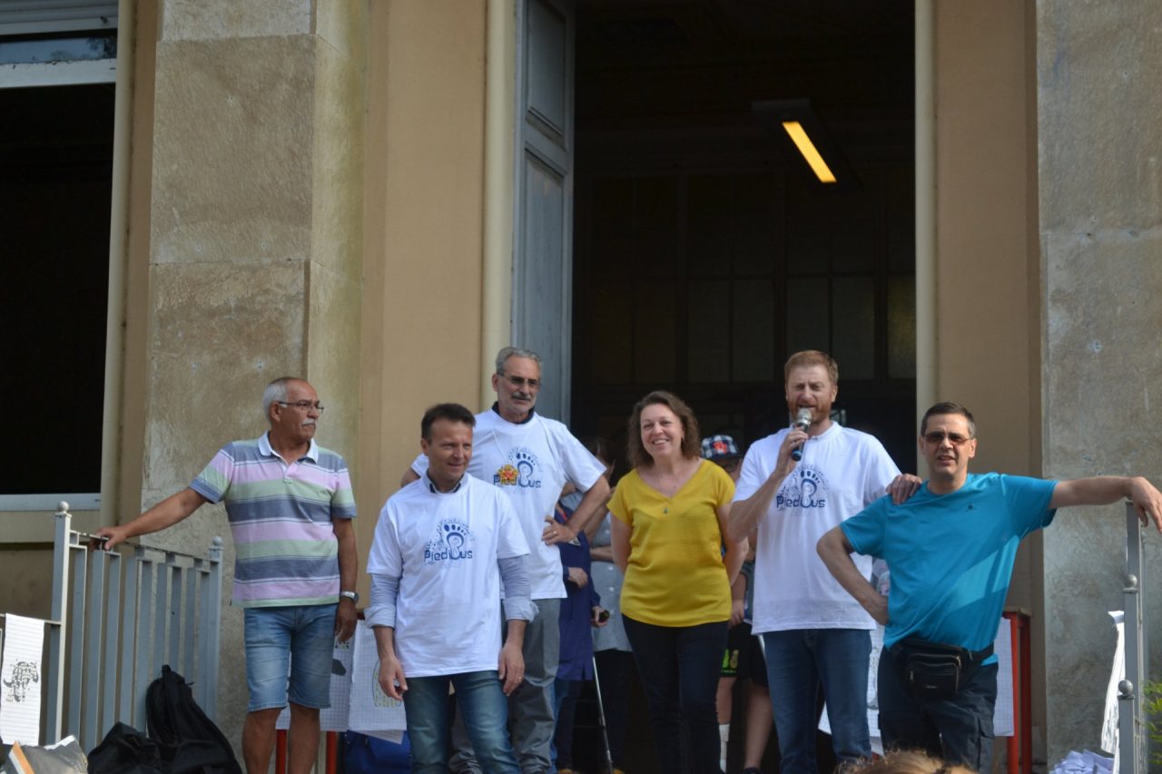 Piedibus Travagliato: maxi festa per l’ultima corsa dell’anno scolastico. Alle 8 sono arrivate alla primaria 7 linee del Piedibus con circa 200 bambini, accompagnati dai genitori e dall’Age.