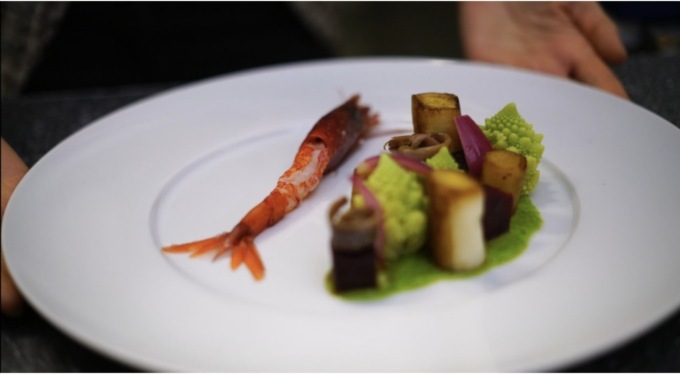 Ora, sfoderate la vostra vena artistica componendo il piatto come se fosse un quadro. Iniziate con un letto di salsa di lattuga romana a specchio, adagiatevi le verdure e le Acciughe del Cantabrico e completate con il protagonista, il gambero rosso di Mazzara.