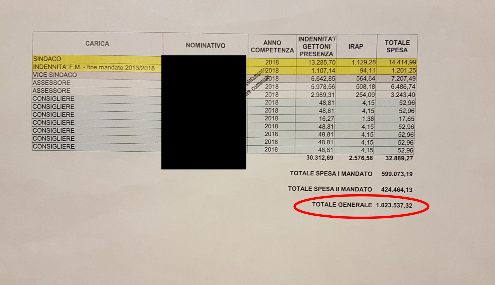 Molto più rumoroso il post, corredato da tabella rilasciata dagli uffici comunali, dove i sostenitori di Futuro Adesso hanno evidenziato i costi del decennio politico scorso, guidato dalla giunta di Andrea Bianchi. Il totale della tabella, confermato dal Comune, è di 1.023.537,32 euro.