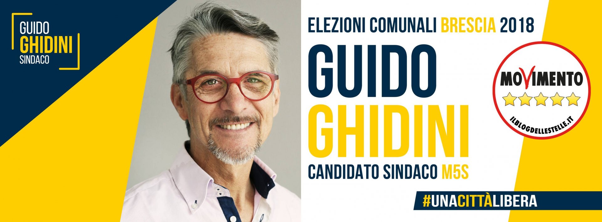 Candidato in corsa del M5S, Guido Ghidini ha tenuto per tutto il corso della campagna elettorale toni e modi molto pacati, abbandonando la tradizionale cartellonistica pre elezioni, e puntando su 15 punti semplici e chiari per il cittadino. Sostenuto da Vito Crimi, politico italiano, senatore ed ex presidente del gruppo parlamentare del Movimento 5 Stelle al Senato, ha portato avanti il pensiero della cittadinanza partendo dall’esperienza dei quartieri, spinto anche dal forte sostegno nazionale che il partito ha avuto nell’ultimo periodo.