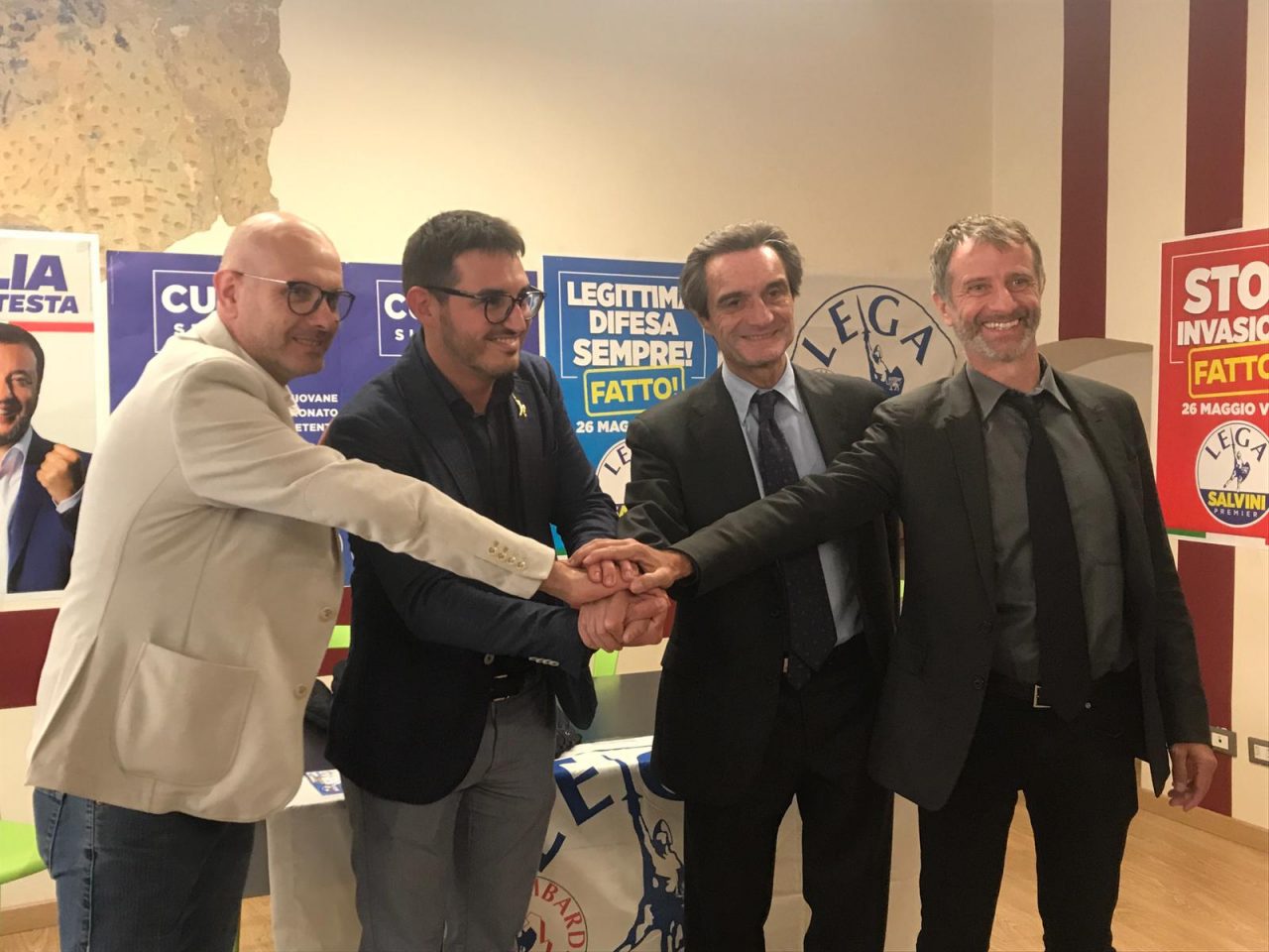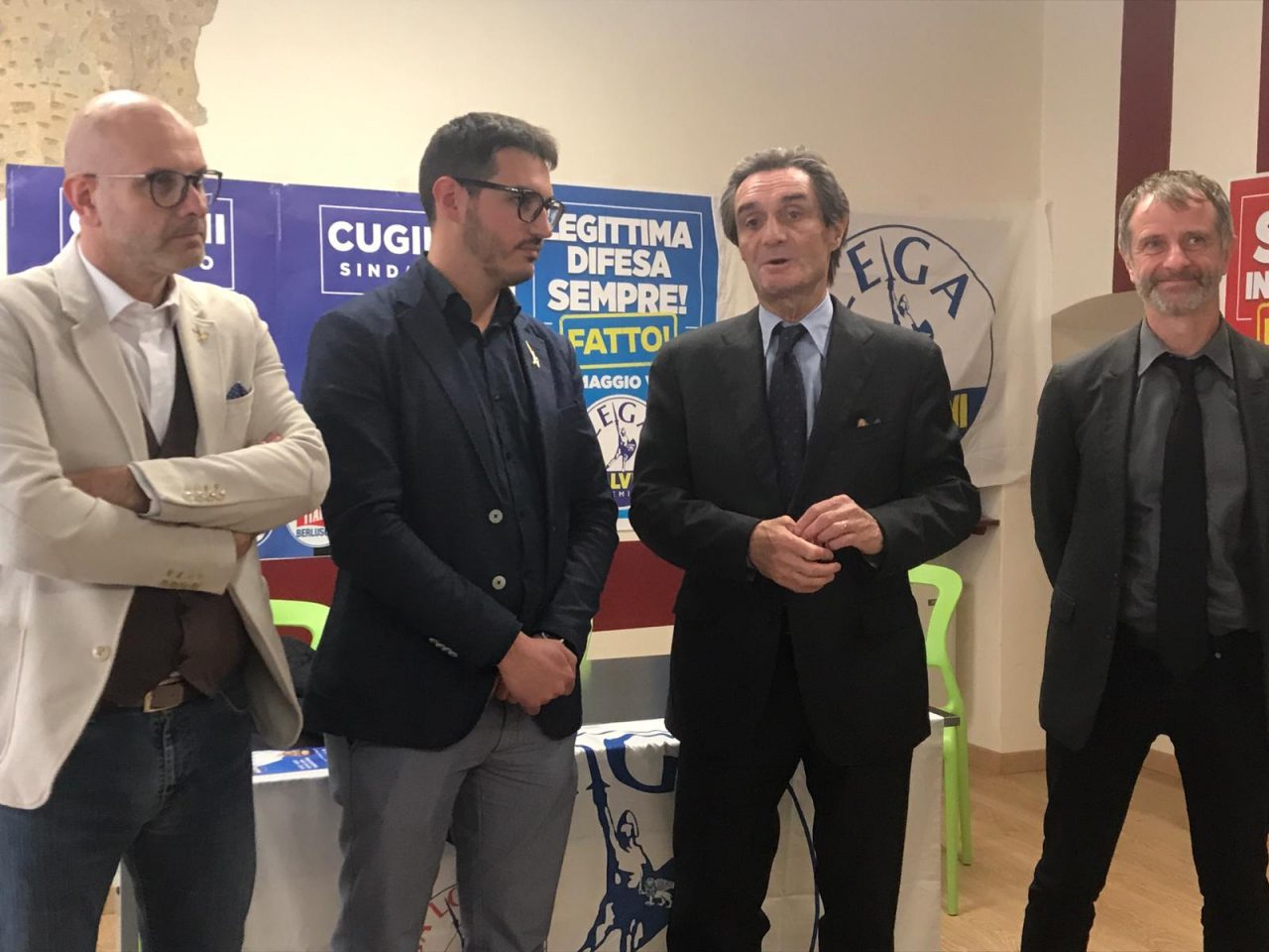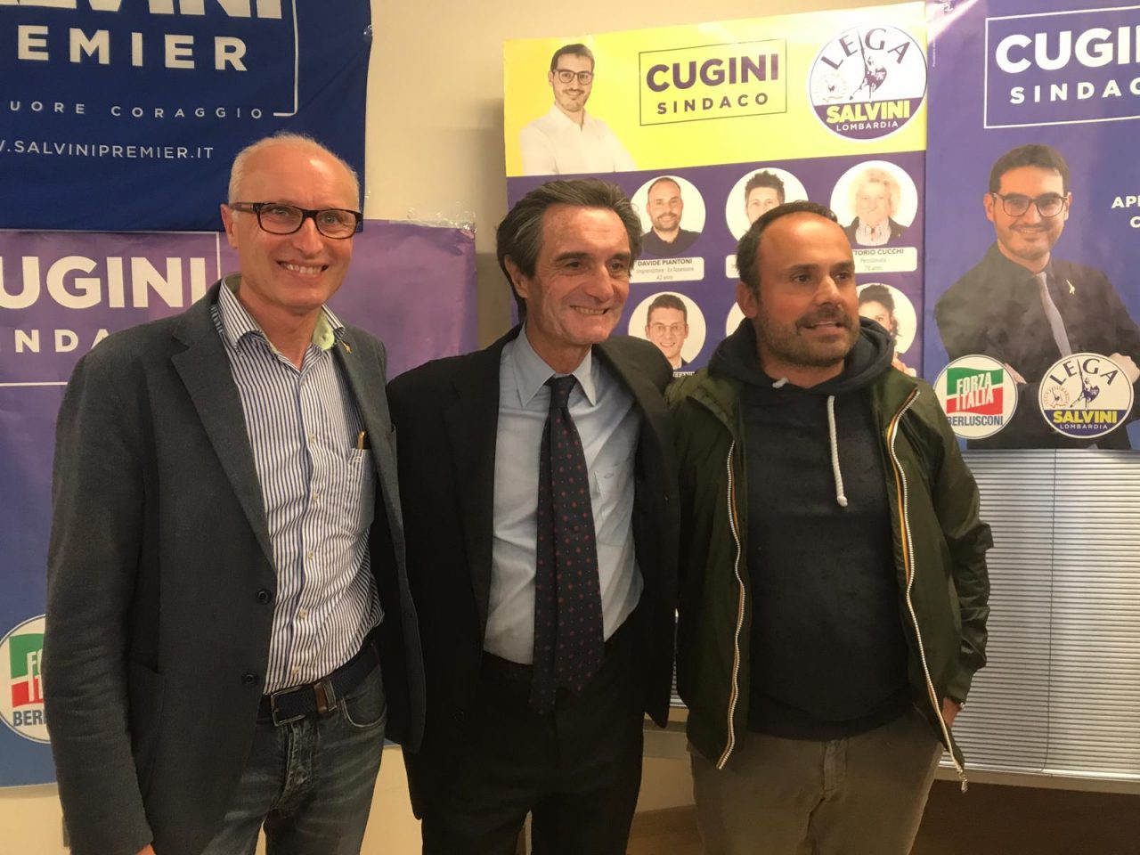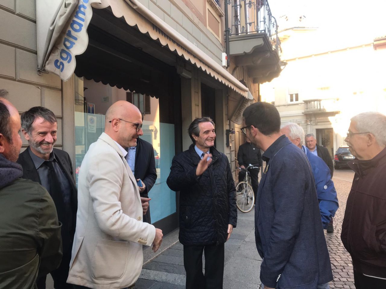 Il numero uno di Regione Lombardia è arrivato nel comitato elettorale di via De Gasperi.