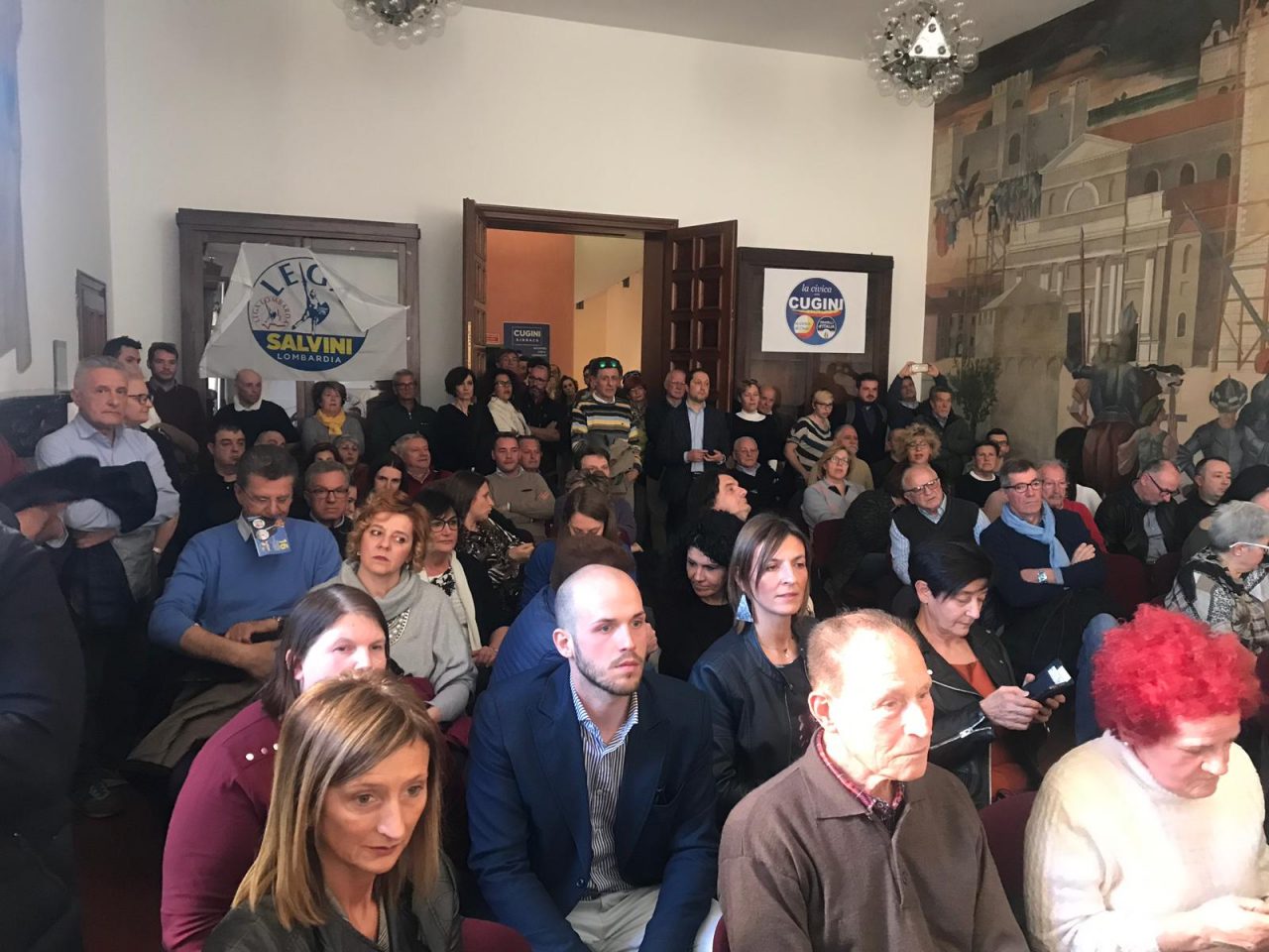 Tutto esaurito e gente in corridoio per la prima presentazione del candidato del Centrodestra Alessandro Cugini. Il segretario della Lega, che ha nella sua compagnine anche Forza Italia, Fratelli d’Italia e la Civica di Chiari con Cugini, si è raccontato davanti a un folto pubblico e alla presenza di numerosi esponenti politici locali e nazionali e ha spiegato al pubblico di essere pronto alla corsa alle elezioni del 26 maggio nelle quali sfiderà il primo cittadino in carica Massimo Vizzardi. Il clarense, trentenne, ha parlato della sua famiglia, dei suoi studi e delle sue idee per poi accennare ad alcuni dei punti in programma. Immancabile il collegamento con questione del Polo della primaria, della riapertura del Santellone, con l’area dell’ex Turla, la sicurezza, l’associazionismo e tanto altro.