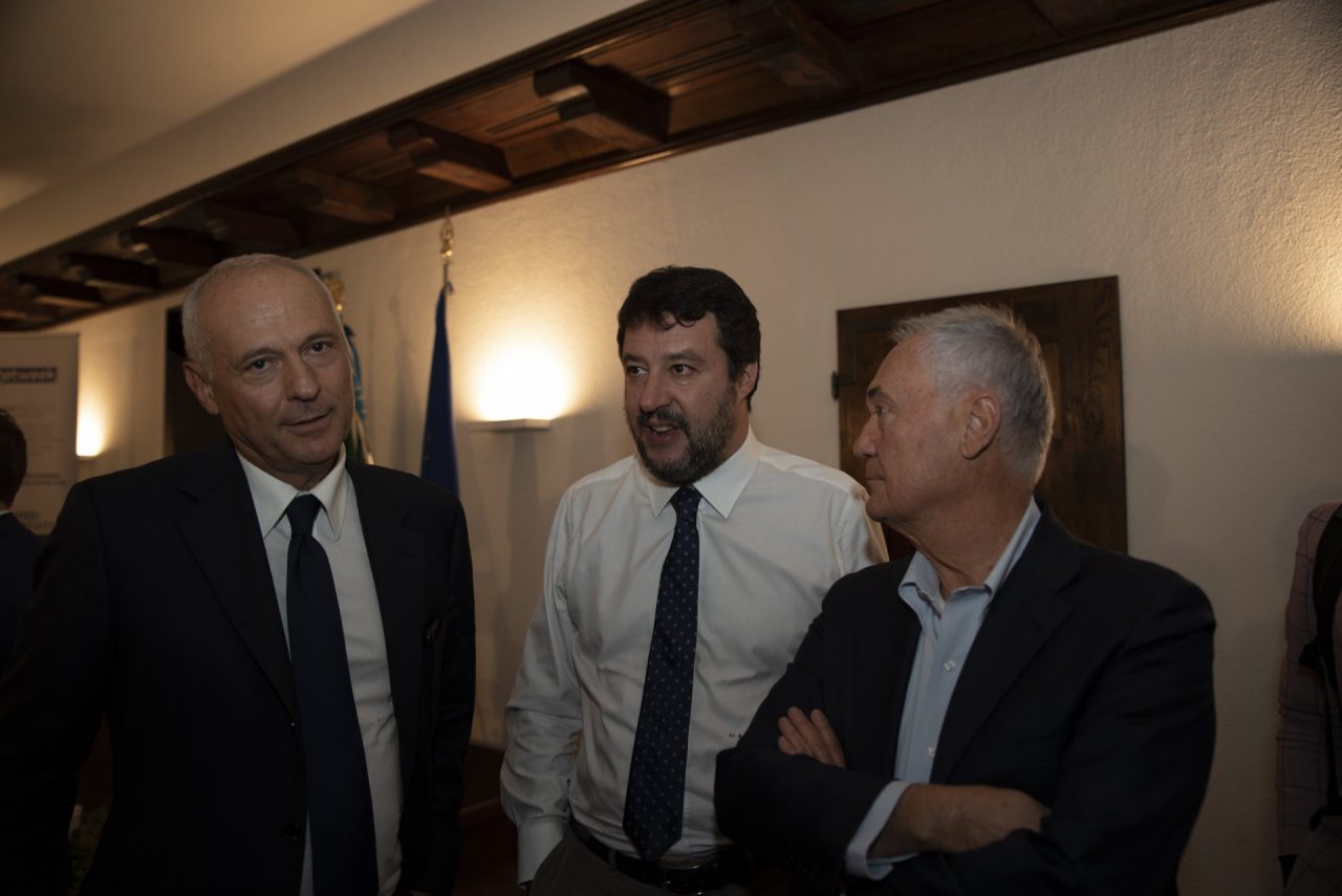 Un battagliero Matteo Salvini questa sera, lunedì 11 novembre 2019, a Capriano di Briosco (Mb). Villa Walter Fontana è stata scelta, infatti, da Cancro primo aiuto e gruppo editoriale Netweek, che hanno fortemente voluto una serata dibattito alla quale non sono mancati neppure il governatore della Lombardia Attilio Fontana (che fra l’altro è anche presidente onorario della onlus Cpa), i parlamentari Massimiliano Romeo (capogruppo della Lega in Senato) e Paolo Grimoldi (segretario della Lega Lombarda), l’europarlamentare Angelo Ciocca e l’ex ministro Gian Marco Centinaio (tutti nel cda di Cpa).