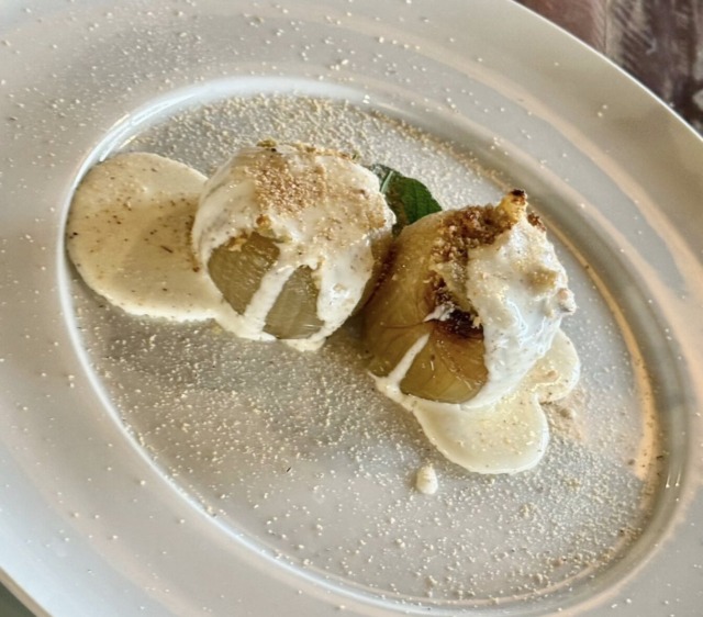 La ricetta del ristorante di Arcore: cipolla con fonduta di formaggi e polvere di cipolla bruciata