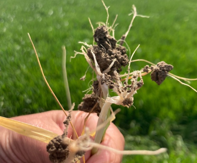 Il confronto radicale di una pianta trattata con Nutrevo (a sinistra) con una coltivata tradizionalmente (a destra)