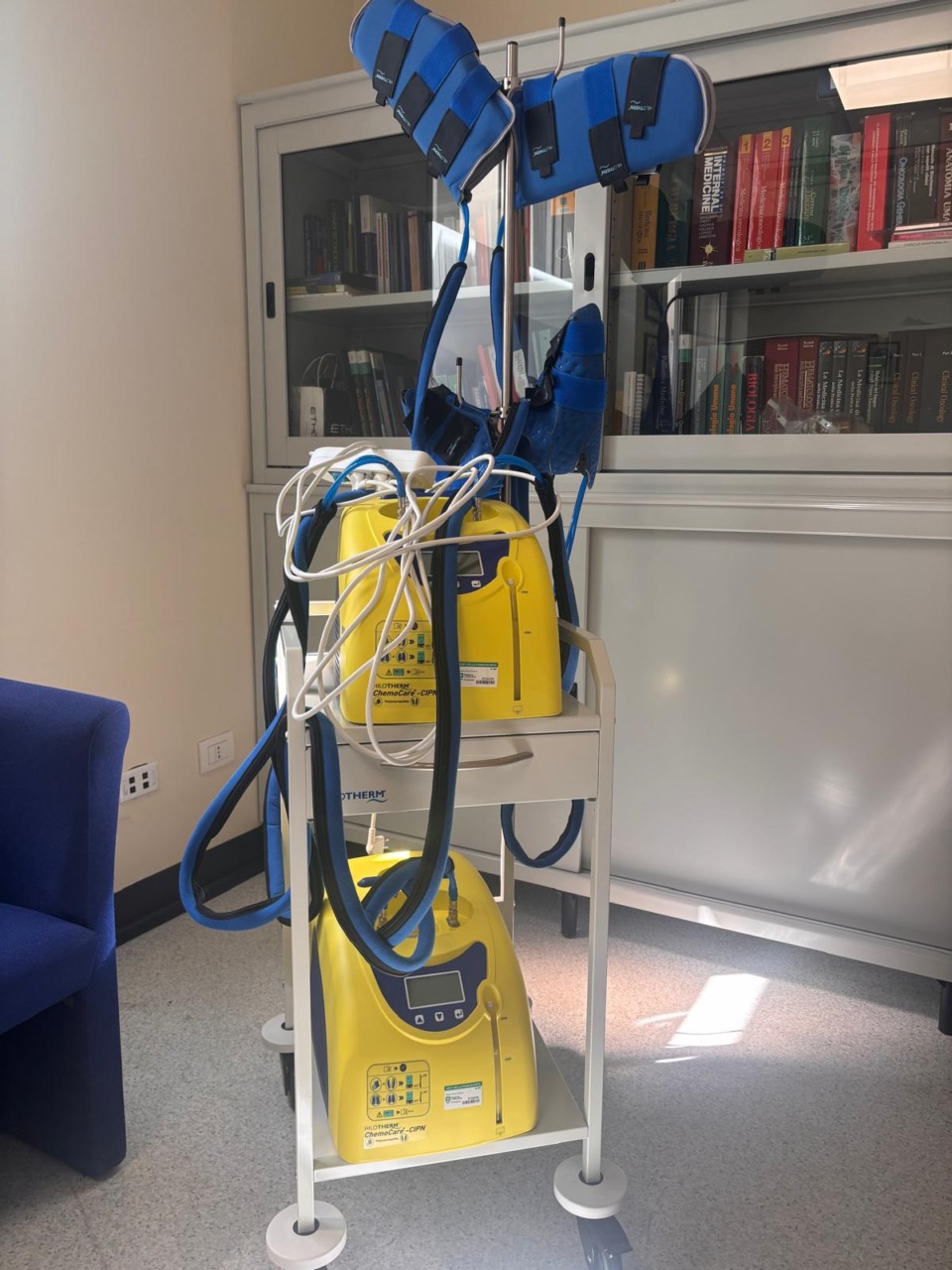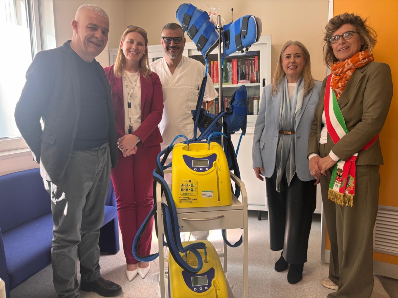 Chemocare, l’apparecchiatura composta da due unità e donata all’ASST Franciacorta, rappresenta una tecnologia innovativa pensata per migliorare la qualità della vita dei pazienti sottoposti a chemioterapia. Si tratta di un dispositivo che utilizza la crioterapia, ovvero il raffreddamento controllato di mani e piedi, per ridurre gli effetti collaterali legati ai trattamenti oncologici. Il sistema è composto da elementi che generano freddo in modo costante e mirato, consentendo di limitare il deposito dei farmaci chemioterapici nelle estremità e prevenire così disturbi frequenti come formicolii, dolore e neuropatie periferiche. In particolare, l’utilizzo di Chemocare aiuta a evitare l’alterazione della guaina mielinica, struttura fondamentale per il corretto funzionamento dei nervi.