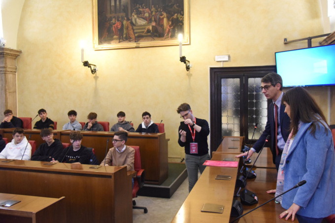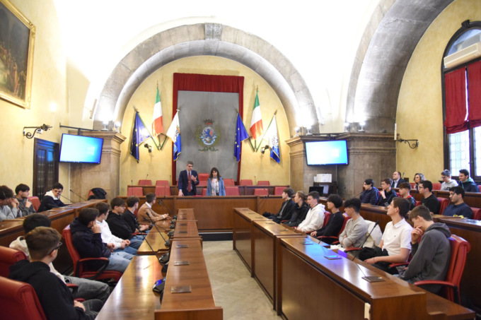 Questa mattina (martedì 7 maggio 2024) l’Assessore alle Attività Produttive, al Turismo e ai Gemellaggi Andrea Poli ha rivolto un saluto di benvenuto nella Sala del Consiglio di palazzo Loggia, a una delegazione di studenti della Heinrich-Emanuel-Merck-Schule (HEMS) di Darmstadt e dell’Istituto Don Bosco di Brescia.