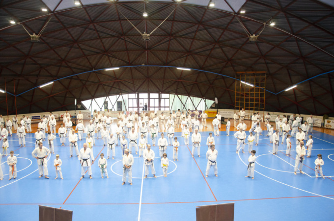 La K.k.c. è nata in America negli anni novanta su iniziativa di Rabbi Elimelech Goldberg, professore di Pediatria alla Wayne State University School of Medicine di Detroit, esperto di arti marziali, che ha perso una figlia all’età di 2 anni a causa della leucemia. Da qui ha capito l’importanza di alcuni esercizi propri delle arti marziali, soprattutto della respirazione diaframmatica, come aiuto nella sopportazione del dolore e delle terapie. Dal 2011 l’associazione è attiva anche in Italia e promuove la formazione di istruttori affinché possano andare negli ospedali nei reparti di oncologia pediatrica ad aiutare i piccoli pazienti. Di questa esperienza hanno parlato Massimo Aiello, responsabile dell’associazione per la zona di Bergamo e il vice presidente Giuseppe Schilef che prima dell’inizio dello stage hanno mostrato come si svolge una lezione e quali sono le accortezze e le tecniche usate. Parole che hanno colpito i presenti, un centinaio di karateki di tutte le età, tra i quali moltissimi bambini che si sono allenati con i più grandi perché il karate è davvero per tutti, non importa la “cintura”, non importano le coppe, ma la volontà di mettersi in gioco e migliorarsi, sempre. In questo il maestro Lazzarini ha dato un ottimo esempio: ha condotto sia l’allenamento con i bambini sia quello con solo gli adulti, dimostrando che il karate è qualcosa di profondo. Talmente profondo che anche l’assessore allo Sport Felice Franchi, invitato per l’occasione, è rimasto fortemente impressionato: