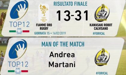 Solo 3 minuti di vantaggio: è Garrido a segnare, con qualche protesta perché la meta è arrivata da una palla persa delle Fiamme su un vantaggio non concretizzato. Calvisano gestisce segnando ancora con Martani, poi nominato migliore in campo, e di nuovo con il centro argentino. Pescetto fa il 100% dalla piazzola, arriva il bonus e il risultato non cambia più: 13-31, bonus e primato confermato.