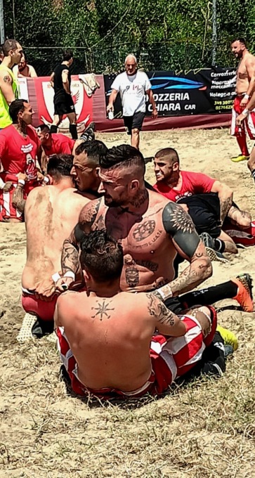 Antico calcio storico romano: protagonisti sul campo i campioni Neri di Brescia