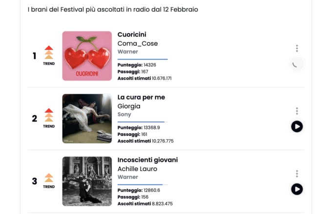 Il brano più trasmesso in radio è quello dei Coma_Cose