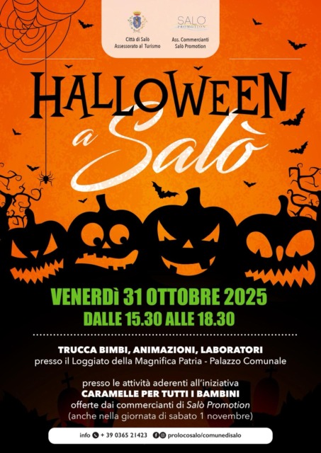 A Salò due giornate di festa, allegria e magia per grandi e piccini. Venerdì 31 ottobre e sabato 1 novembre 2025 il centro storico si animerà con l’evento “Dolcetto o Scherzetto”, il tradizionale appuntamento che trasforma le vie della città in un grande villaggio dell’Halloween. Oltre 60 esercizi commerciali aderenti a Salò Promotion accoglieranno i bambini mascherati con più di 300 kg di caramelle e dolcetti, da distribuire a chi pronuncerà la fatidica frase: “Dolcetto o scherzetto?”. Basterà entrare in uno dei negozi, bar o ristoranti che espongono l’apposita vetrofania per vivere l’atmosfera più dolce (e un po’ spaventosa) dell’anno.
