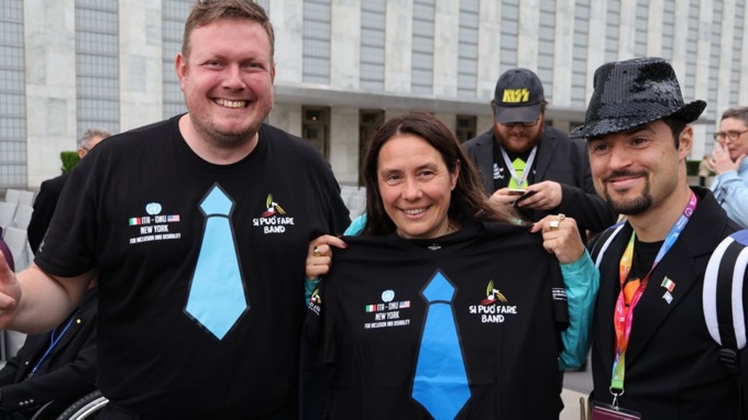 “Al Palazzo delle Nazioni Unite di New York, abbiamo organizzato un primo side event che ha visto protagonisti i ragazzi della Si può fare band che si sono esibiti regalando grandi emozioni a tutti – ha comunicato via social – Anche con questa iniziativa abbiamo voluto dimostrare i talenti e le competenze di ogni persona e quanto sia importante offrire opportunità e investire sulle potenzialità di ognuno. Complimenti a Davide Zubani, alla “Si può fare band” e a tutti gli straordinari supporter venuti per loro dall’Italia, grazie”.