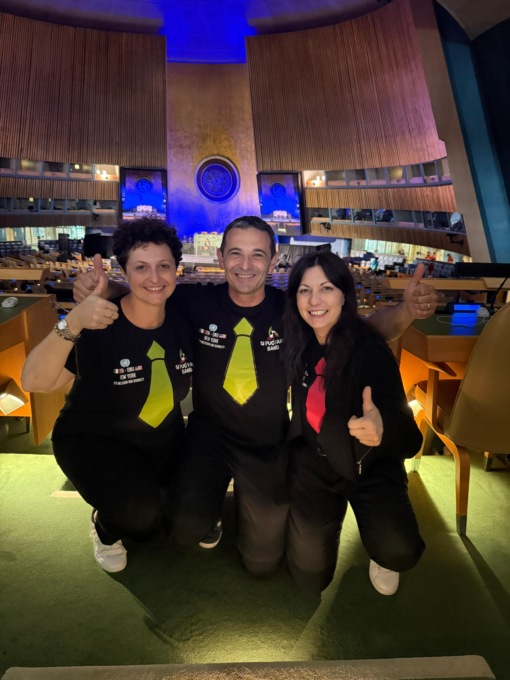 Una vera impresa riuscita grazie ad una straordinaria comunione d’intenti: in primis il vulcanico presidente dell’associazione Si può fare, Davide Zubani, che per primo ha sognato il viaggio nella grande mela e con l’entusiasmo che lo ha sempre contraddistinto ha lavorato alacremente sacrificando ore al proprio lavoro, è un libero professionista, e alla vita privata per di raggiungere questo obiettivo contro ogni difficoltà, contro ogni paura, contro ogni detrattore. Del resto non è mai stato solo in questa impresa: i tanti volontari che hanno sposato la sua causa e la sua idea che un modo diverso di fare inclusione sia possibile, non si sono risparmiati, dopo il lavoro correvano nella saletta prove per suonare con i ragazzi e pianificare i concerti. Altra colonna portante: i genitori, le famiglie intere che hanno accompagnato i ragazzi non solo fisicamente ma supportandoli e spronandoli con grande forza e infine i ragazzi stessi, senza i quali questa impresa non sarebbe stata possibile: entusiasti, motivati, energici e pieni di talento. C’è un’altra figura chiave dietro al concerto alla sede Onu di NY: il ministro alla Disabilità Alessandra Locatelli che da subito ha creduto nell’associazione.