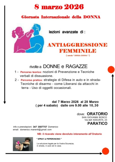 La parrocchia Santa Maria Assunta e l’oratorio di Paratico hanno riservato una festa speciale a tutte le donne che vogliono celebrare la giornata internazionale a loro dedicata. Sabato 7 marzo 2026 alle 19.30 in oratorio sarà possibile cenare ed esibirsi al karaoke. Il menù comprende giro pizza, bibita, birra o acqua, caffè e dolce al costo di 17 euro. Le iscrizioni sono ancora aperte fino ad esaurimento dei posti. Per maggiori informazioni ed iscrizioni è possibile scrivere a Cristina al 3481433023.