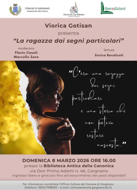 Appuntamento domenica 8 marzo 2026 alle 16 nella biblioteca Antica della Canonica di Gargnano (via don Primo Adami 46). Ingresso libero fino ad esaurimento dei posti disponibili. Tra le pagine la storia personale dell’autrice per la quale quella di scrivere, di gettare su un foglio per iscritto la propria esistenza, ha rappresentato un’avventura catartica. A moderare saranno Flavio Casali e Marcello Zane con letture di Enrica Recalcati.