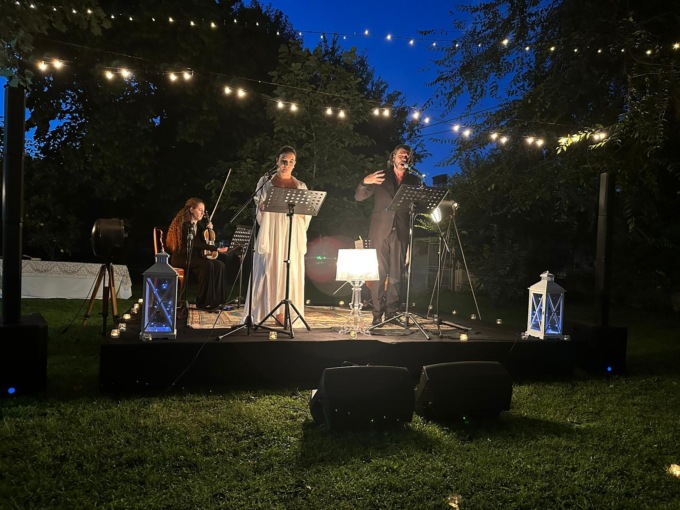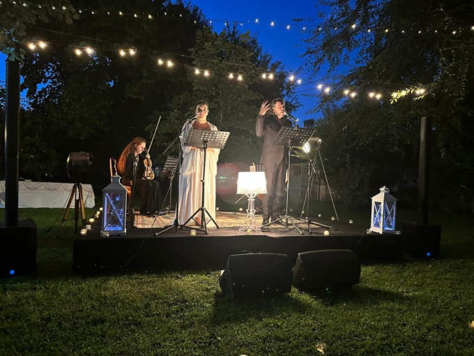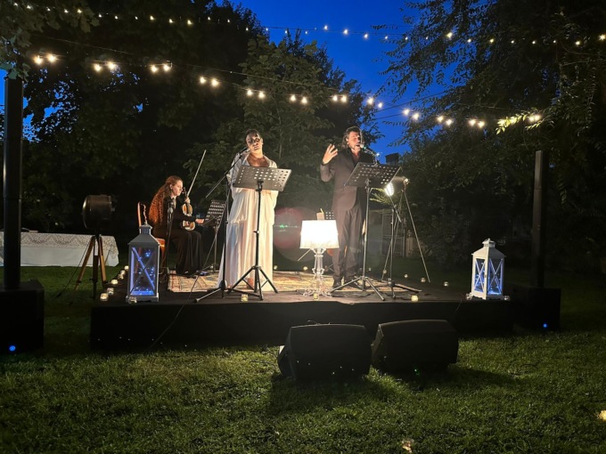 Nell’incantevole giardino di Casa Tossi, Mino Manni e Marta Ossoli, si sono destreggiati nel racconto dei due amanti, sulle note dell’accompagnamento musicale da parte di Francesca Ruffilli e Camilla Squassina, rispettivamente al violoncello e al violino; portando gli spettatori a viaggiare con la fantasia e a relazionare le proprie vite con gli intrecci e le infinite sfumature che il Manzoni ha utilizzato per narrare il rapporto e le vicissitudini dei due giovani.