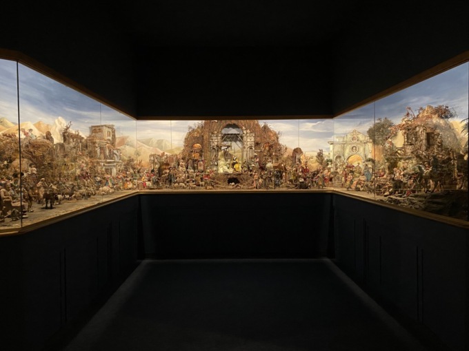 Nato dalla grande passione e dalla dedizione della proprietaria, la collezionista tedesca Hiky Mayr, il museo è stato allestito infatti con una particolare attenzione ai dettagli storici e artistici. Entrare al Museo Il Divino Infante significa percorrere un itinerario alla scoperta della tradizione, della scultura, dei tessuti antichi e, soprattutto, del restauro. É tramite il restauro infatti che la signora Hiky Mayr ha recuperato oltre 300 sculture – tutte rigorosamente italiane – studiandone i dettagli, recuperando le parti lignee e tessili, ridefinendo le cromie originarie e riportando all’antico splendore il patrimonio che nei secoli era stato abbandonato. Non solo sculture singole: anche un intero presepe napoletano, realizzato secondo la tradizione e con tutta la teatralità napoletana tipica dei presepi del diciottesimo secolo, mostra una serie infinita di comparse, figure per la maggior parte intagliate nel legno, di animali e di una varietà di suppellettili (vestiti, gioielli, arredi, finimenti ecc.). La peculiarità del presepe napoletano settecentesco è la felice convivenza dell’elemento profano accanto a quello sacro e il presepe del Museo Il Divino Infante, realizzato in un’area di circa 25 mq, ne è una magnifica dimostrazione.