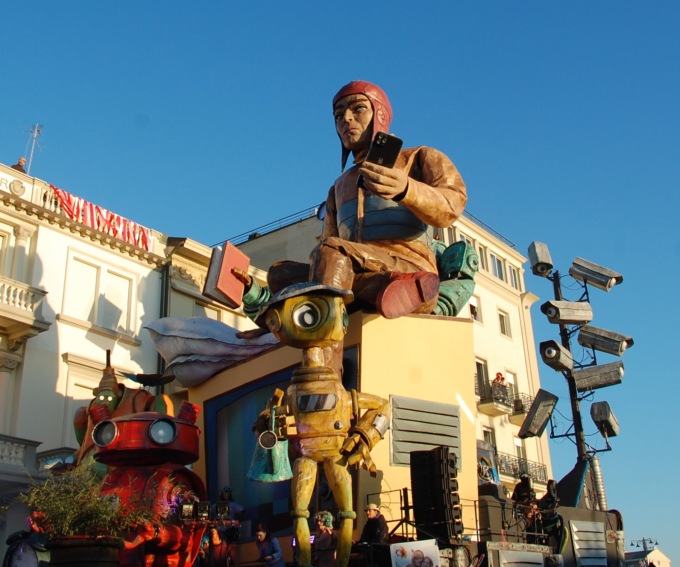 La competizione, quest’anno, è davvero agguerrita. L’elevato livello tecnico e artistico è apparso subito evidente durante il primo corso mascherato di sabato pomeriggio: non sarà un facile lavoro per i giudici stilare la classifica finale. Il cielo azzurro e un sole quasi primaverile hanno accompagnato la sfilata, accolta da una folla davvero impressionante e festante. Bambini di tutte le età ma anche tanti giovani e meno giovani si sono riversati sul lungomare di Viareggio per ammirare i carri allegorici. Sono nove quelli in corsa per la prima categoria, in un’esplosione di creatività, ingegno e ironia. I temi, come sempre, sono vari ma tutti di estrema attualità: l’adolescenza e le sue insidie, i pericoli di internet, l’intelligenza artificiale, ma anche il disagio mentale, il cambiamento climatico, gli orrori di una modernità accecata dall’odio e schiava del sensazionalismo. Con eccezionale maestria, nei carri ecco che si rappresentano dei concetti importanti, dei messaggi che colpiscono per la loro veemenza: ma, nel perfetto spirito carnevalesco, ciò che prevale è la festa, con la musica a tutto volume, in vortice di colori e di costumi. E, visto che della bellezza non si è mai sazi, e il desiderio di divertirsi non si spegne, la sfilata prosegue con i carri di Seconda categoria (anche qui il livello è molto alto)e poi le mascherate di gruppo e le maschere isolate, con un ritmo incalzante che trascina, quasi stordisce. Le ore passano rapide e anche quando cala il buio si continua a ballare, aspettando con il naso all’insù lo spettacolo pirotecnico musicale che ha chiuso una giornata magica.