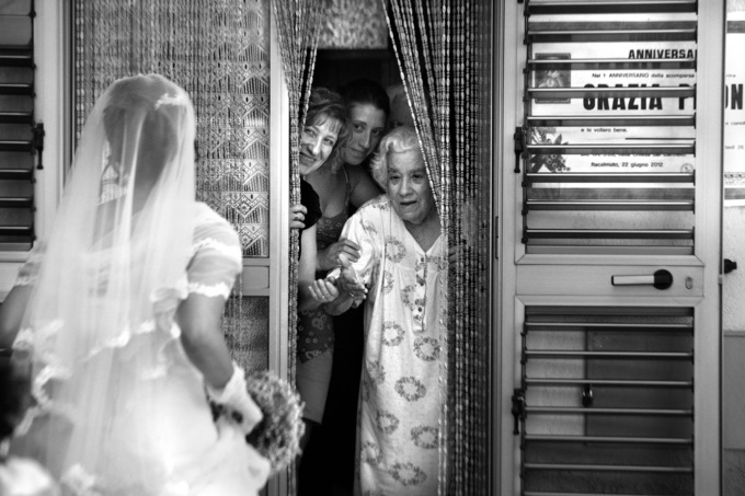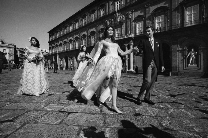 La selezione fotografica di Francesco Cito proviene dal progetto “Matrimoni Napoletani” (o “Neapolitan Wedding”), vincitore del prestigioso World Press Photo nel 1995 (categoria “Day in the Life”, 3° premio). Anche in questo caso, l’autore abbandona la monotonia della fotografia matrimoniale convenzionale per creare un linguaggio visivo nuovo, fortemente autoriale, che esplora le dinamiche sociali del matrimonio con occhio critico e riflessivo. L’approccio di Cito scompone il matrimonio tradizionale, come scritto da Michele Smargiassi nell’introduzione al libro Neapolitan Weddings, analizzando con precisione il meccanismo socio-antropologico di questo rito: