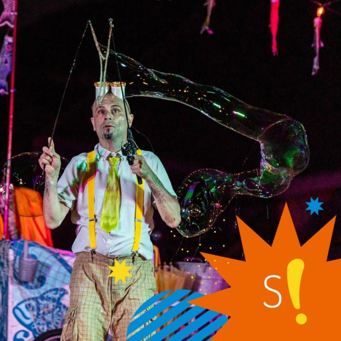 Torna per la terza volta al Festival Michele Cafaggi, che ha già incantato il pubblico di Strabilio con le sue storie surreali e sognanti e le bolle di sapone. Questa volta propone uno spettacolo nuovo appositamente creato per l’anteprima di Strabilio che unisce bolle, clownerie e musica. Un racconto visuale senza parole, che trae ispirazione dalle atmosfere circensi e del varietà, un magico spettacolo di clownerie, pantomima e musica che, nato per i più piccoli, finisce per incantare il pubblico di qualsiasi età.