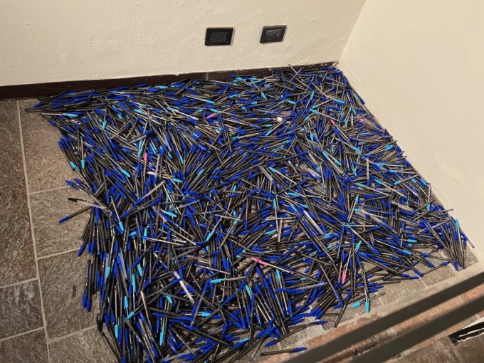 L’artista concettuale Silvia Inselvini (Brescia, 1987), è considerata una tra le artiste emergenti più importanti nel panorama nazionale. Érebos, mostra a cura di Melania Raimondi e Camilla Remondina, simboleggia i binomi luce/oscurità, giorno/notte, pieno/vuoto. Nella mitologia greca Erebo è oscurità, tenebre, Inferno ma anche l’alba e la vita e rappresenta il luogo in cui le anime buone si radunano prima di giungere nei Campi Elisi. Figlio di Caos e Caligine, l’oscurità primordiale, Erebo è una divinità ancestrale che dà vita con la sorella Notte a diverse personificazioni tra cui la morte, la discordia e la miseria, tipicamente ostili, ma più interessanti sono quelle legate alla vitalità quali il giorno, il sogno ed Etere, ovvero l’astrazione del cielo più alto e della luce più pura raggiungibile solo dagli dei. La mostra si presenta come un vero e proprio percorso; partendo dalla prima sala in cui la luce naturale riempie l’ambiente e dialoga con la brillantezza dell’inchiostro blu si giunge alle sale successive dove la luce è più soffusa e i lavori virano verso il nero più profondo, creando un ambiente intimo e raccolto. In questo modo il visitatore è accompagnato in un viaggio che lo conduce all’Erebo e ad una profonda riflessione personale legata alla religione intesa come ritualità, alla persistenza drammatica della vita quotidiana, alla memoria e allo scorrere del tempo.
